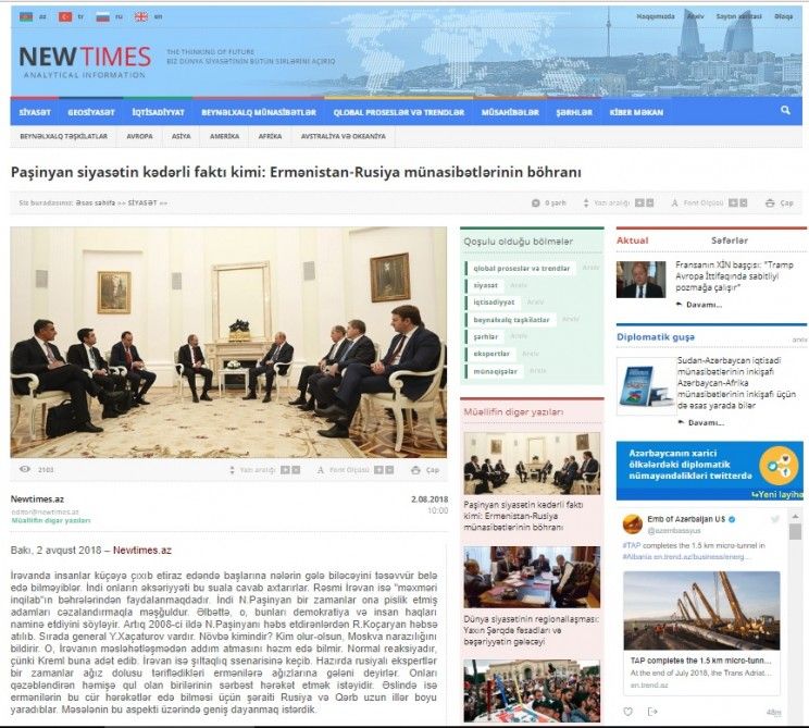 Nikol Paşinyan baş nazir olandan hərəkətləri Moskvanı təəccübləndirir və qıcıqlandırır. Yeni Ermənistan iqtidarı bütün istiqamətlərdə Rusiyanın maraqlarına uyğun gəlməyən addımlar atır. Onlardan daha çox narahatlıq doğuranı antirusiya əhval-ruhiyyəli kadrlara yüksək vəzifələrin verilməsi və paralel olaraq Ermənistanda Rusiyanın dayaqlarının laxladılmasıdır. Hər iki məqamla bağlı Rusiya tərəfi bir neçə dəfə mövqeyini bildirib və N.Paşinyan hakimiyyətinə xəbərdarlığını edib. Buna baxmayaraq, N.Paşinyan Kremlə tərs gələn siyasətini davam etdirməkdədir.