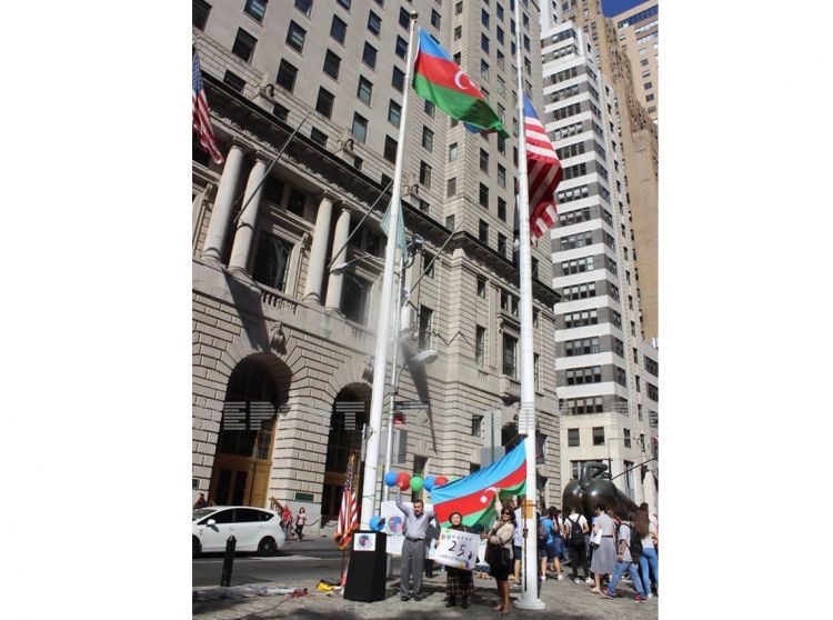 Nyu-York Azərbaycanlıları Assosiasiyasının rəhbəri Ercan Yerdələnli deyib ki, Azərbaycan bayrağı mayın 28-dən etibarən 10 gün müddətində həmin yerdə ABŞ-ın dövlət bayrağı ilə bərabər dalğalanacaq.