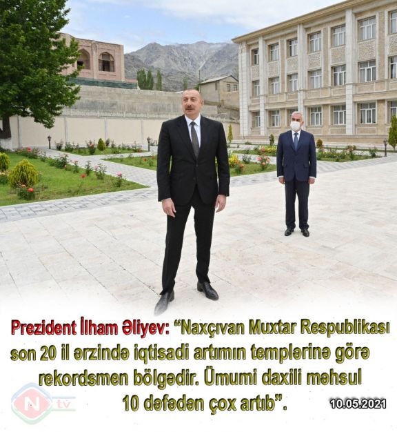“Naxçıvan Muxtar Respublikası son 20 il ərzində iqtisadi artımın templərinə görə rekordsmen bölgədir. Ümumi daxili məhsul 10 dəfədən çox artıb”. NUHÇIXAN İnformasiya Agentliyi xəbər verir ki, bu sözləri Prezident İlham Əliyev Naxçıvana səfəri zamanı Azərbaycan Televiziyasına müsahibə verərkən deyib.