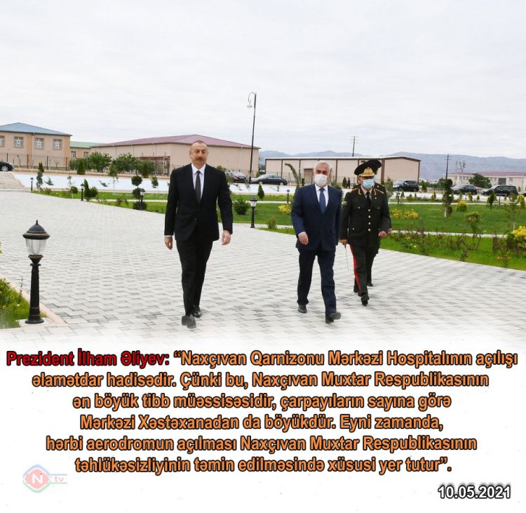 “Naxçıvan Qarnizonu Mərkəzi Hospitalının açılışı əlamətdar hadisədir. Çünki bu, Naxçıvan Muxtar Respublikasının ən böyük tibb müəssisəsidir, çarpayıların sayına görə Mərkəzi Xəstəxanadan da böyükdür. Eyni zamanda, hərbi aerodromun açılması Naxçıvan Muxtar Respublikasının təhlükəsizliyinin təmin edilməsində xüsusi yer tutur”. NUHÇIXAN İnformasiya Agentliyi xəbər verir ki, bu sözləri Prezident İlham Əliyev Azərbaycan Televiziyasına müsahibəsi zamanı deyib.
