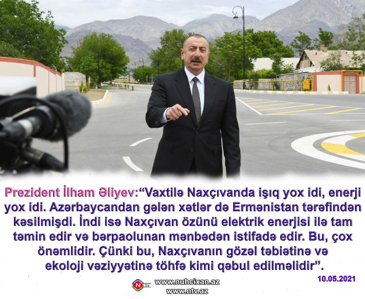 “Vaxtilə Naxçıvanda işıq yox idi, enerji yox idi. Azərbaycandan gələn xətlər də Ermənistan tərəfindən kəsilmişdi. İndi isə Naxçıvan özünü elektrik enerjisi ilə tam təmin edir və bərpaolunan mənbədən istifadə edir. Bu, çox önəmlidir. Çünki bu, Naxçıvanın gözəl təbiətinə və ekoloji vəziyyətinə töhfə kimi qəbul edilməlidir”. NUHÇIXAN İnformasiya Agentliyi xəbər verir ki, bu sözləri Prezident İlham Əliyev Azərbaycan Televiziyasına müsahibəsi zamanı deyib.