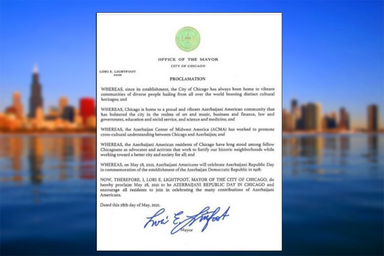 ABŞ-ın İllinoys ştatının Çikaqo şəhərinin meri Lori Laytfut 2021-ci il mayın 28-ni Azərbaycan Respublika Günü elan olunması haqqında bəyannamə imzalayıb.