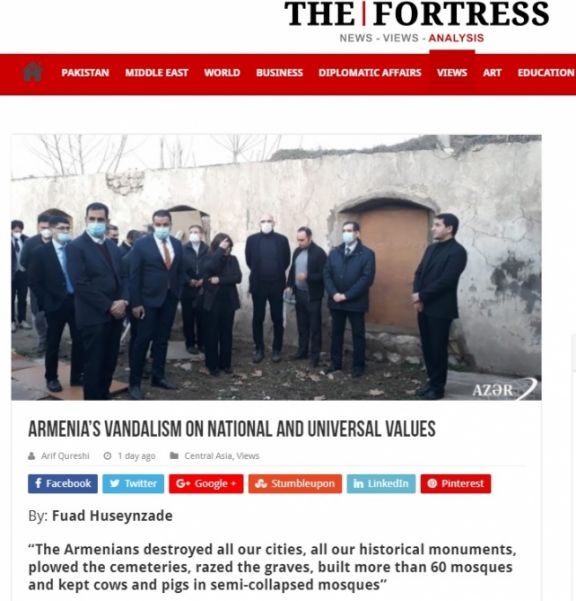 Soydaşlarımızın təşəbbüsü ilə Pakistanın http://thefortress.com.pk saytında “Ermənistanın milli və bəşəri dəyərlərə vandallığı” sərlövhəli məqalə dərc olunub.