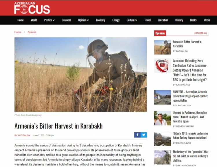 Böyük Britaniyanın “Fokusda Azərbaycan” xəbər portalı Azərbaycanın işğaldan azad edilmiş ərazilərinin Ermənistan tərəfindən minalanmasını pisləyən məqalə yayıb.