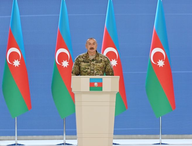 “Biz güclü iradə göstərdik, cəsarət göstərdik, milli ruh nümayiş etdirdik və istədiyimizə nail olduq. Bir daha demək istəyirəm ki, İkinci Qarabağ müharibəsi şanlı tarix kimi, şanlı qələbə kimi Azərbaycan tarixinə qızıl hərflərlə əbədi yazılıb. Azərbaycan bundan sonra müzəffər ölkə kimi yaşayacaq, Ermənistan bundan sonra məğlub edilmiş ölkə kimi yaşayacaq”, - deyə Müzəffər Ali Baş Komandan İlham Əliyev vurğulayıb.