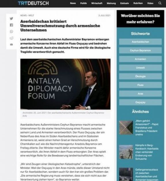 Almaniyanın nüfuzlu “TRT Deutsch” xəbər portalında “Azərbaycan Ermənistan şirkətləri tərəfindən ətraf mühitin çirkləndirilməsini tənqid edir” sərlövhəli məqalə dərc edilib.