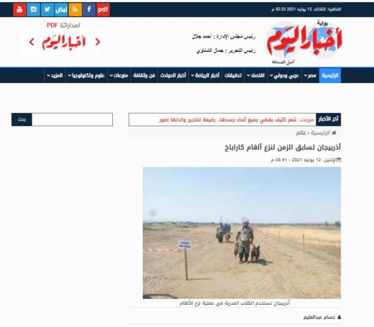 Ərəbdilli KİV-lər Azərbaycanın işğaldan azad olunmuş ərazilərində həyata keçirilən minatəmizləmə əməliyyatları barədə məqalələr yaymaqda davam edir.