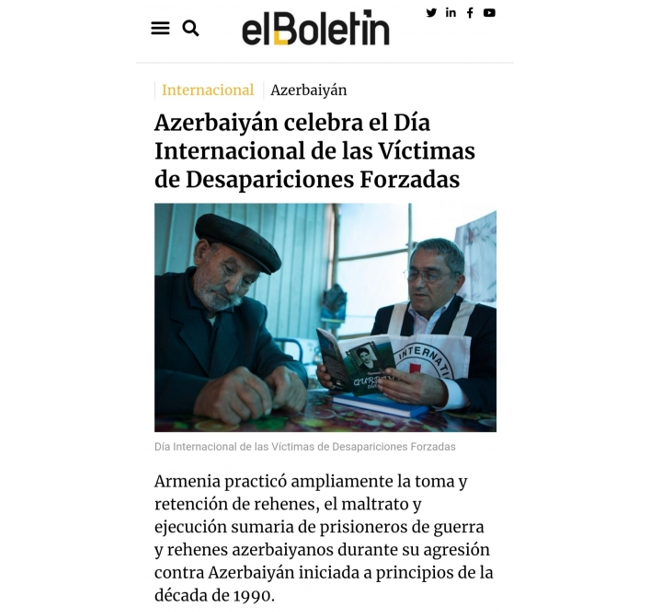 İspaniyanın beynəlxalq iqtisadiyyat və maliyyə jurnalının “elmundofinanciero.com” saytında Beynəlxalq İtkin Düşmüş Şəxslər Gününə həsr olunmuş məqalə dərc edilib.