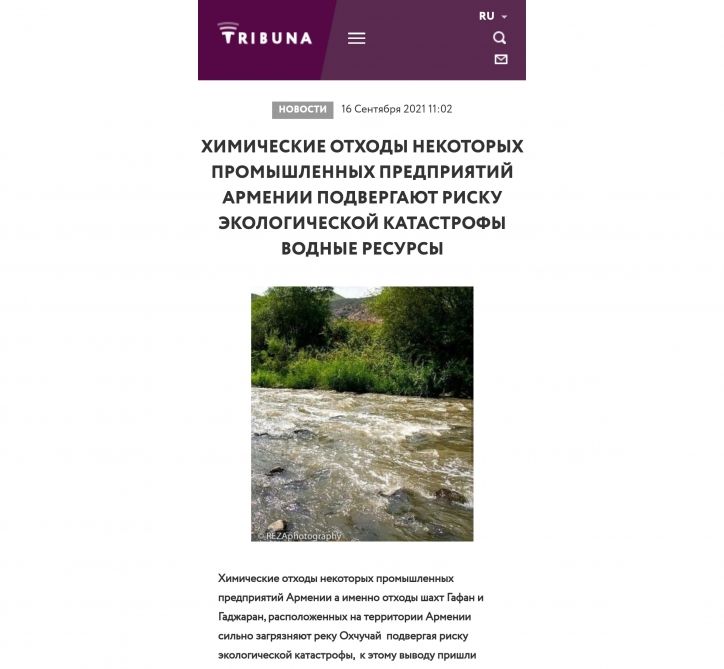 Moldovanın aparıcı “Tribuna” xəbər portalı Ermənistan tərəfindən Oxçuçayın çirkləndirilməsi barədə məqalə yayıb.