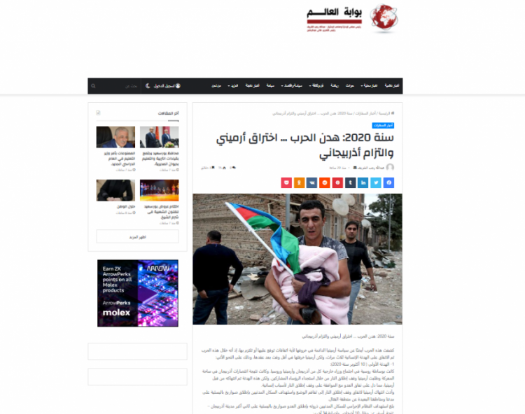 Misirin “Yeni dünya xəbərləri” informasiya portalında 44 günlük müharibə zamanı Ermənistan rəhbərliyinin təcavüzkar və təzadlı siyasəti haqqında məqalə yayımlanıb.