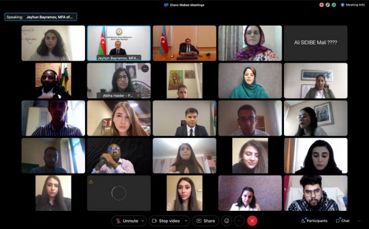 Azərbaycan Respublikası Prezidentinin Qoşulmama Hərəkatının sədri qismində irəli sürdüyü təşəbbüslər əsasında COVID-19 pandemiyasına qarşı mübarizə sahəsində Hərəkata üzv dövlətlərin nümunəvi həmrəylik nümayiş etdirdiyini bildirən xarici işlər naziri, Gənclər Şəbəkəsinin fəaliyyətinin bu həmrəyliyə əlavə töhfə verəcəyini vurğulayıb.
