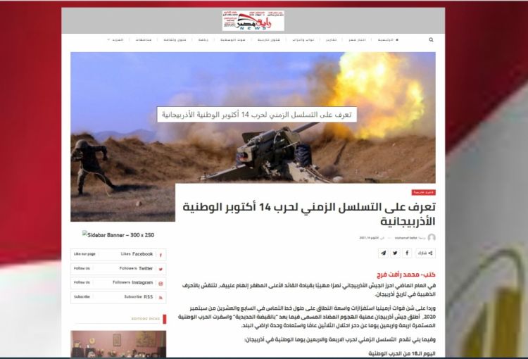 Misirin “Rayetmısr” portalında Azərbaycan Ordusunun 44 günlük Vətən müharibəsində Zəfər yolunun xronologiyası dərc edilib.