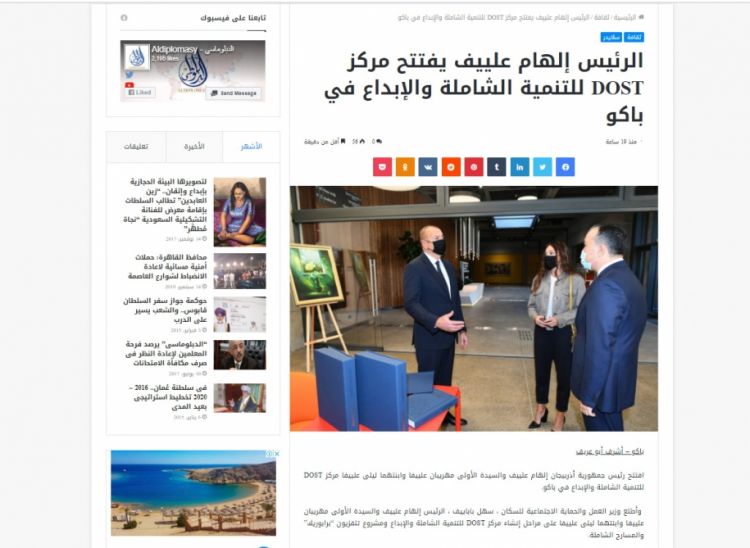 Misir portalı Prezident İlham Əliyevin DOST İnklüziv İnkişaf və Yaradıcılıq Mərkəzinin açılışında iştirak etməsi barədə xəbər yayımlayıb