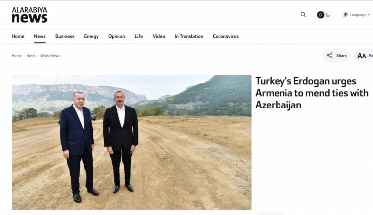 “Əl Ərəbiyə” telekanalı: Ermənistanın Türkiyə ilə əlaqələrinin normallaşması onun Azərbaycanla problemlərinin həllindən asılıdır