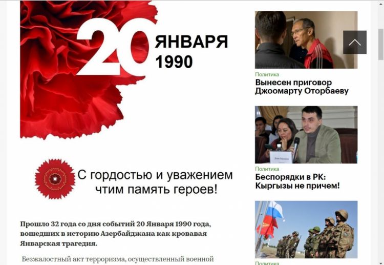 Azərbaycanın Qırğızıstandakı səfirliyinin təşəbbüsü ilə bu ölkənin “01.kg”, “today.kg”, “barometr.kg”, “nazarnews.org” portallarında 20 Yanvar faciəsinin 32-ci ildönümü ilə bağlı rus dilində məqalələr yerləşdirilib.