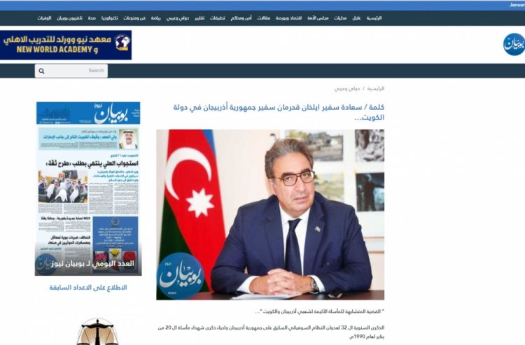 Küveytin “Bobia” nəşrində Azərbaycanın bu ölkədəki səfiri Elxan Qəhrəmanın 20 Yanvar faciəsi haqqında məqaləsi dərc edilib.