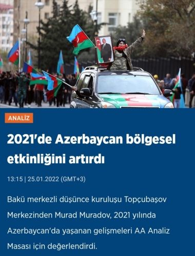 NUHÇIXAN İnformasiya Agentliyi xəbər verir ki, bu fikirlər Anadolu Agentliyində dərc edilən “2021-ci ildə Azərbaycan bölgədə təsirini artırdı” sərlövhəli analitik məqalədə yer alıb.