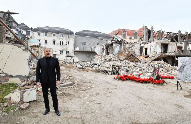 Prezident İlham Əliyev qeyd edib ki, ballistik raketlərin trayektoriyası böyük dövlətlər tərəfindən izlənilir və hər kəs gördü ki, erməni ordusu gecə vaxtı dinc şəhəri, müharibə zonasından uzaqlarda yerləşən şəhərin məhz yaşayış məhəlləsini məqsədyönlü şəkildə atəşə tutub.