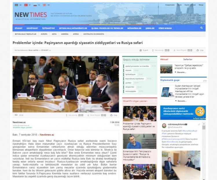 Erməni KİV-ləri baş nazir Nikol Paşinyanın Rusiya səfəri ərəfəsində rəsmi İrəvanın narahatlığını ifadə edən məlumatlar yayır. Azərbaycan və Rusiya Prezidentlərinin Soçi görüşündən sonra Ermənistan rəhbərliyinin atmalı olduğu addımları müəyyənləşdirə bilməməsi ekspertlərin diqqətindən yayınmayıb. Onlar təsəvvür edə bilmirlər ki, Moskva ilə Bakının yaxın əməkdaşlığı necə baş tuta bilər? Bəs onda Ermənistan necə olsun? Çünki indiyə qədər ermənilər Azərbaycanın geosiyasi əhəmiyyətinin minimum olduğundan dəm vururdular. İndi isə Ermənistanın ən yaxın müttəfiqi Rusiya belə Bakı ilə strateji tərəfdaşlığı təsdiq edən onlarla sənəd imzalayır. Rusiya-Azərbaycan əməkdaşlığında digər sahələrlə yanaşı, hərbi-müdafiə və təhlükəsizlik məsələləri də ciddi yer tutur. Bütün bunlar Ermənistanın xarici siyasətinin tam yanlış meyarlar üzərində qurulduğunu göstərməklə bərabər, həm də bu ölkənin gələcəyini şübhə altına alır. Hazırda erməni ekspert dairələri bu kimi faktlar fonunda N.Paşinyana Kremldə hansı sualların veriləcəyi üzərində baş sındırır. Məsələnin bu aspekti üzərində geniş dayanmağı lazım bilirik.