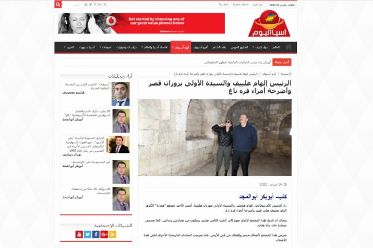 Misirin “Asia Əl Yom” agentliyinin saytında və “Əl Masriyə” portalında Prezident İlham Əliyevin və birinci xanım Mehriban Əliyevanın Ağdamda Qarabağ xanlarının türbələri və yaşayış evi - İmarət kompleksində olmaları barədə xəbər yayımlanıb.