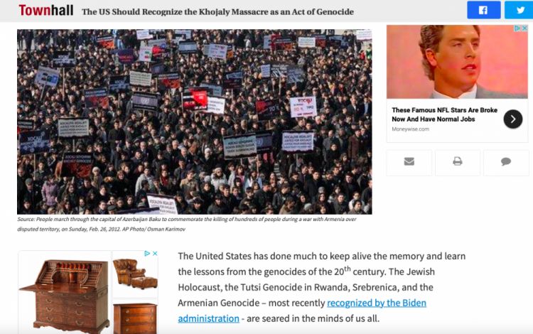 Amerikada çıxan “Townhall” nəşrində “ABŞ Xocalı qırğınını soyqırımı aktı kimi tanımalıdır” sərlövhəli məqalə dərc edilib.