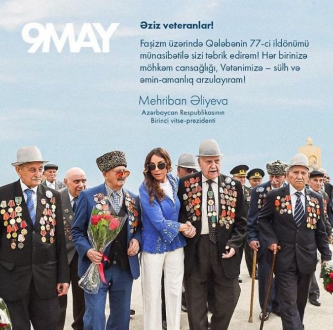 Birinci vitse-prezident Mehriban Əliyeva rəsmi instaqram səhifəsində faşizm üzərində Qələbənin 77-ci ildönümü münasibətilə paylaşım edib