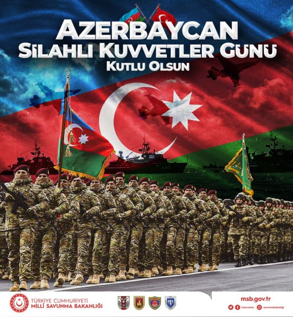 Türkiyə Milli Müdafiə Nazirliyi 26 İyun - Silahlı Qüvvələr Günü münasibətilə Azərbaycan xalqını təbrik edib.
