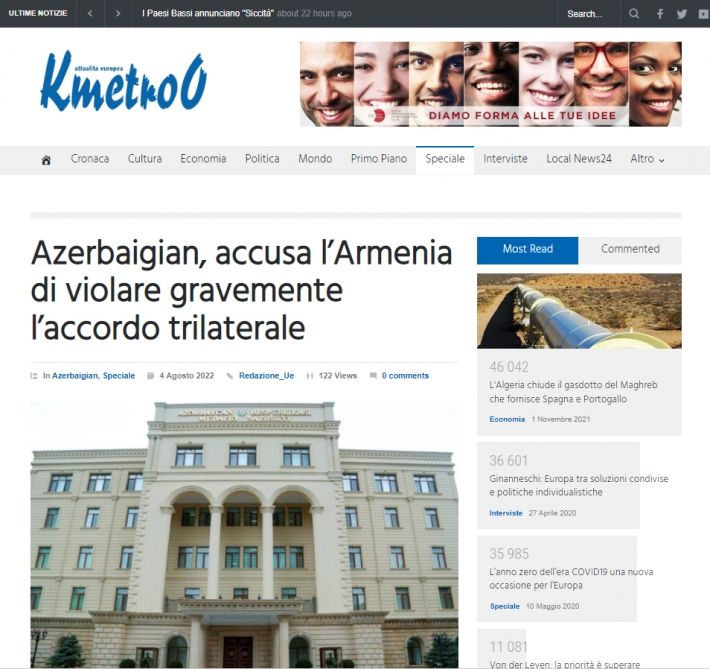 Bundan başqa, dərc olunan yazılarda Azərbaycanın Xarici İşlər Nazirliyinin mətbuat açıqlamasına da istinad edilərək bildirilib ki, avqustun 3-də baş vermiş qanlı insident bir daha Ermənistanın üçtərəfli razılaşmanı kobud şəkildə pozduğunu, eyni zamanda, iki dövlət arasında münasibətlərin normallaşdırılması istiqamətində səylərə xələl gətirdiyini nümayiş etdirir. Bu, həm də Ermənistanın beynəlxalq vasitəçilərin səylərinə hörmətsizliyinin göstəricisidir.