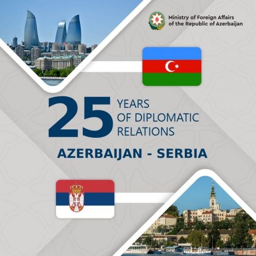 Xarici İşlər Nazirliyi rəsmi tviter səhifəsində Azərbaycan ilə Serbiya arasında diplomatik münasibətlərin qurulmasının 25-ci ildönümü münasibətilə paylaşım edib.
