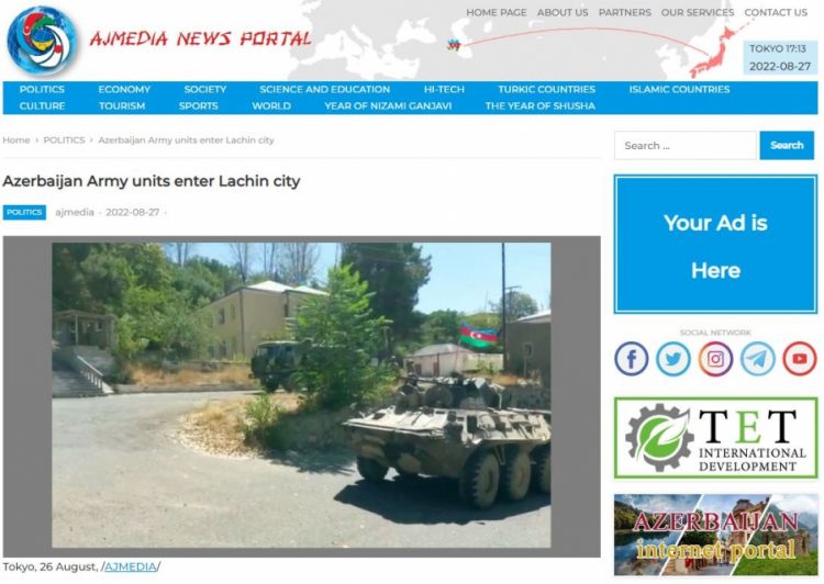 Yaponiyanın “ajmedia.jp” portalı Azərbaycan bayrağının Laçın rayonunda ucaldılması barədə məlumatlar yayıb.