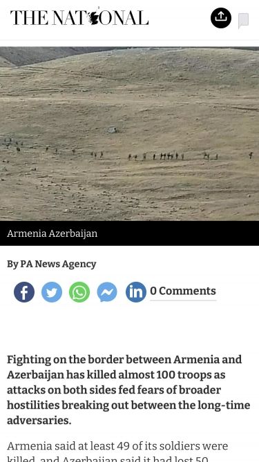 Şotlandiyanın “The National” xəbər saytı Ermənistan silahlı qüvvələrinin Azərbaycanla sərhəddə törətdiyi təxribatdan yazıb.