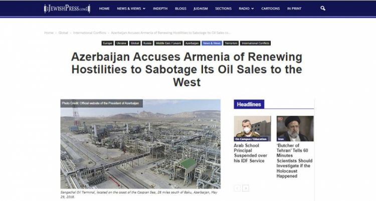 ABŞ-ın ən böyük yəhudi qəzetlərindən olan “The Jewish Press”də “Azərbaycan onun Qərbə neft tədarükünü sabotaj etmək məqsədi daşıyan Ermənistanı hərbi əməliyyatları bərpa etməkdə ittiham edir” sərlövhəli məqalə dərc olunub.