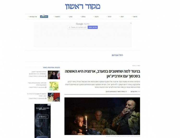İsrailin ən böyük həftəlik qəzetlərindən olan “Makor Rişon”da ivritçə “Qərbin düşündüyündən fərqli olaraq, Azərbaycanla münaqişədə Ermənistan günahkardır” sərlövhəli məqalə dərc olunub.
