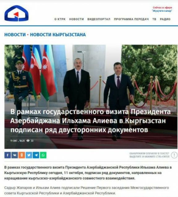 NUHÇIXAN İnformasiya Agentliyi xəbər verir ki, “АКИpress”, “Kabar” informasiya agentlikləri, QTRŞ-nin teleradioyayım korporasiyası, “Veçerniy Bişkek” qəzeti və digər media qurumları səfər çərçivəsində keçirilən görüşlər, imzalanan sənədlər, Birinci Dövlətlərarası Şuranın iclası və digər tədbirlər barədə materiallar hazırlayıblar.