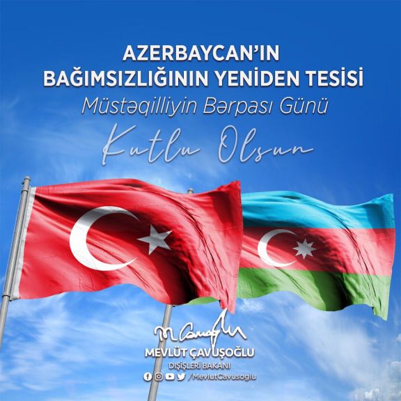 NUHÇIXAN İnformasiya Agentliyi xəbər verir ki, Çavuşoğlu "Twitter"də 18 Oktyabr – Müstəqilliyin Bərpası Günü Münasibətilə paylaşım edib.