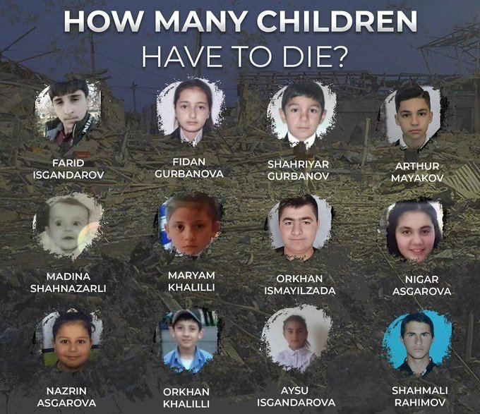 Ermənistanın 44 günlük müharibə zamanı Azərbaycan əhalisinin sıx məskunlaşdığı şəhərləri raket atəşinə tutması nəticəsində 12 uşaq həlak olub.