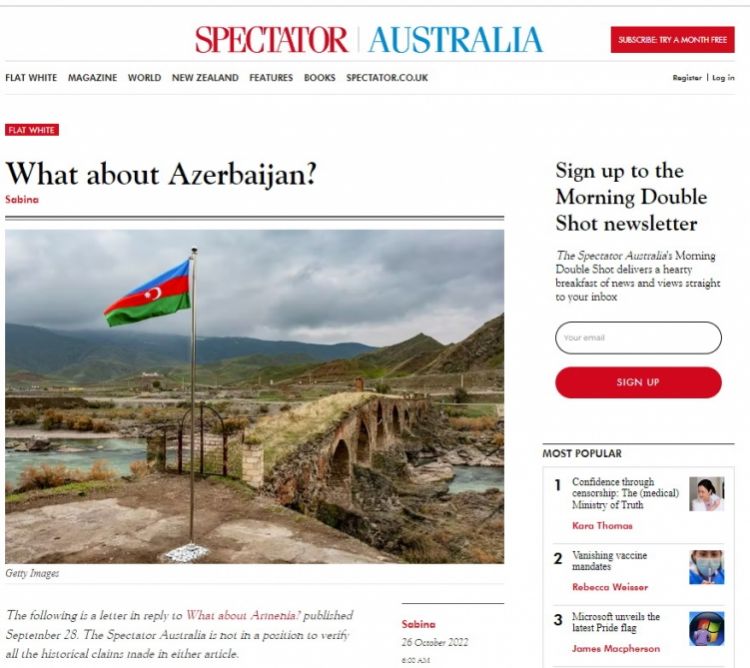 Avstraliyanın “spectator.com.au” saytı Ermənistanın Azərbaycana qarşı əsassız ərazi iddiaları nəticəsində baş vermiş münaqişənin tarixi barədə məqalə yayıb.