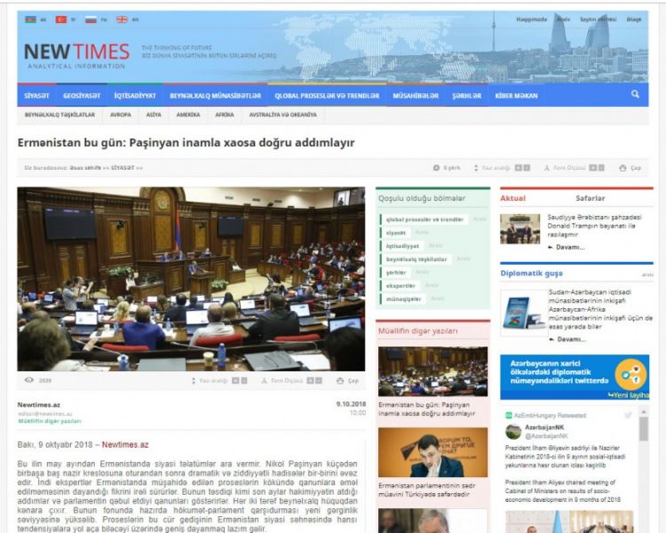 Baş nazir Nikol Paşinyan Ermənistanı inamla yeni kataklizmlərə doğru sürükləyir. Onun atdığı hər bir addım ölkənin siyasi səhnəsində gərginliyin artırılmasına əlavə təkanlar verir. Hazırda ekspertlər Ermənistanda getdikcə dərinləşən hökumət-parlament qarşıdurmasının mümkün siyasi nəticələrini proqnozlaşdırmağa çalışırlar. Demək olar ki, bütün siyasi qüvvələr artıq cəbhələşmədə iştirak edirlər. Bir zamanlar erməni siyasi mühitinin "monolitliyindən" ağızdolusu danışanlar indi sükut edirlər. Həm də ona görə ki, siyasi qütbləşmə onsuz da kiçik olan bu ölkəni daha xırda fraqmentlərə ayırmaq istiqamətini götürüb.