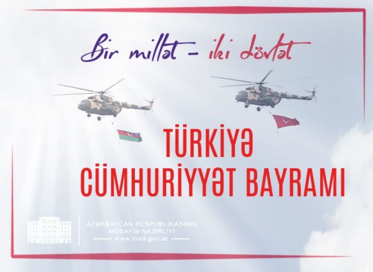Azərbaycan Respublikasının Müdafiə Nazirliyi Türkiyəni Cümhuriyyət Günü münasibətilə təbrik edib.