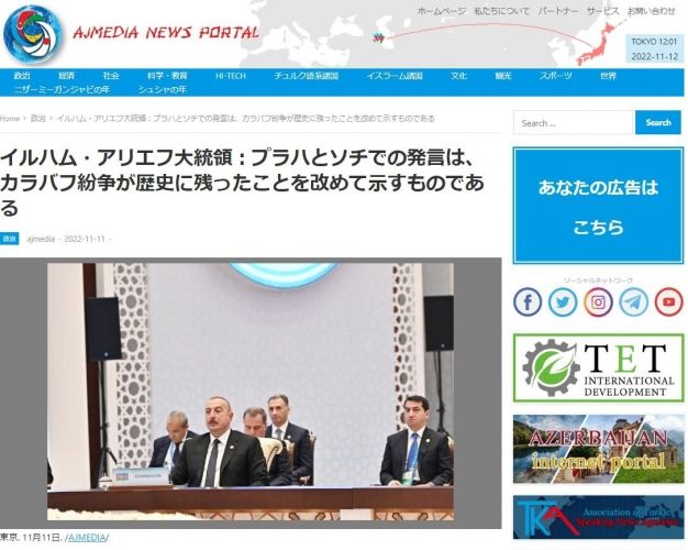 Yaponiya portalı həmçinin məcburi köçkünlərin Qarabağa və Şərqi Zəngəzura Böyük Qayıdışı ilə əlaqədar aparılan nəhəng bərpa və quruculuq işləri barədə Prezident İlham Əliyevin fikirlərinə diqqət çəkib və Azərbaycan liderinin türk dövlətləri başçılarını Qarabağa və Şərqi Zəngəzura səfərə dəvət etməsindən yazıb.