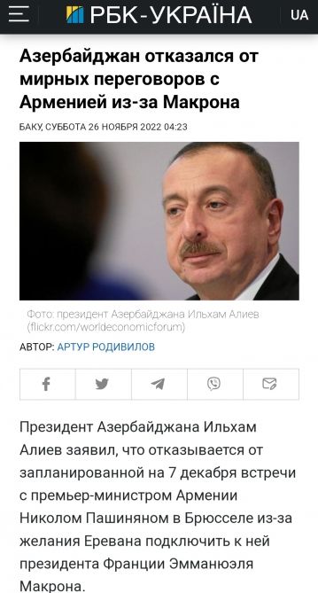 NUHÇIXAN İnformasiya Agentliyi xəbər verir ki, “Ukrinform”, “RBK-Ukrayna” informasiya agentlikləri, “Ukrayinskaya Pravda”, “Antikor”, “UNN”, “ZN”, “NB” və digər xəbər portallarında dərc olunan “Azərbaycan Makrona görə Ermənistanla sülh danışıqlarından imtina edir” sərlövhəli məqalələrdə Prezident İlham Əliyevin mövqeyinə yer ayrılıb.