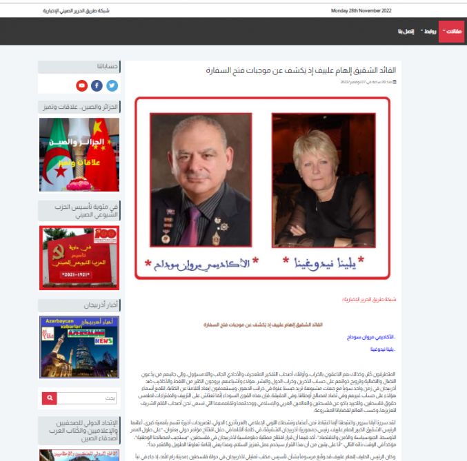 Məqalələrdə həmçinin Azərbaycanın İsraildə səfirlik və Fələstində Təmsilçilik Ofisinin açılması qərarı və Prezident İlham Əliyevin bununla bağlı sərəncamları da rəsmi Bakının Yaxın Şərq siyasətinin növbəti uğuru kimi qiymətləndirilib. Müəlliflər diqqətə çatdırıblar ki, fələstinli politoloq və yazıçı Əbdül Həmid Siam “Əl Qüds Əl Ərəbi” qəzetindəki analitik məqaləsində Fələstin probleminin həlli prosesinin Azərbaycanın uğurla sədrlik etdiyi Qoşulmama Hərəkatı çərçivəsində sürətlənəcəyini vurğulayıb.