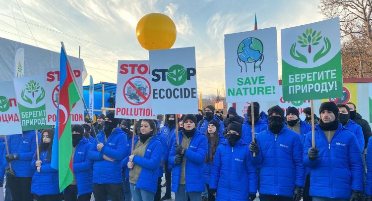 NUHÇIXAN İnformasiya Agentliyinin məlumatına görə, etirazçılar Azərbaycan ərazilərində faydalı qazıntı yataqlarının qanunsuz istismarına etirazlarını bildirən plakatlar qaldırıb şüarlar səsləndiriblər.