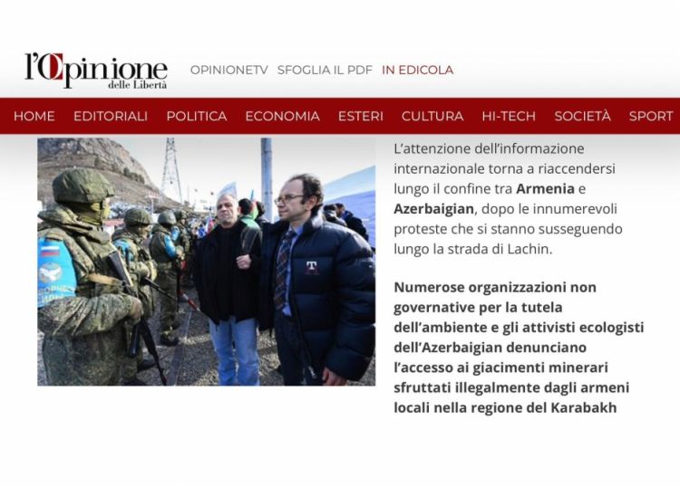 İtaliyanın aparıcı mətbuat orqanlarından olan “l'Opinione” qəzeti azərbaycanlı ekofəalların Şuşa ərazisindən keçən Laçın-Xankəndi yolunda təşkil etdikləri etiraz aksiyasından yazıb.