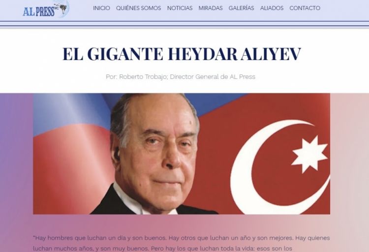 Kolumbiyanın nüfuzlu rəqəmsal KİV-lərindən olan “AlPress” xəbər portalında Azərbaycan xalqının Ümummilli Lideri Heydər Əliyevdən bəhs edən yazı dərc olunub.