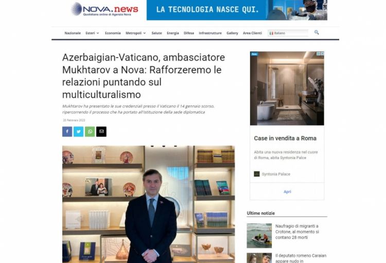 Azərbaycanın Vatikandakı səfiri İlqar Muxtarov İtaliyanın “Agenzia Nova” informasiya agentliyinə verdiyi müsahibədə ermənilərin 31 il əvvəl Xocalıda törədikləri soyqırımı cinayətlərindən bəhs edib.