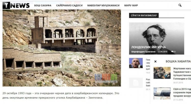 NUHÇIXAN xəbər verir ki, Özbəkistanın “Tnews.uz” portalı Azərbaycanın Zəngilan rayonunun işğalı ilə bağlı məqalə yayıb.