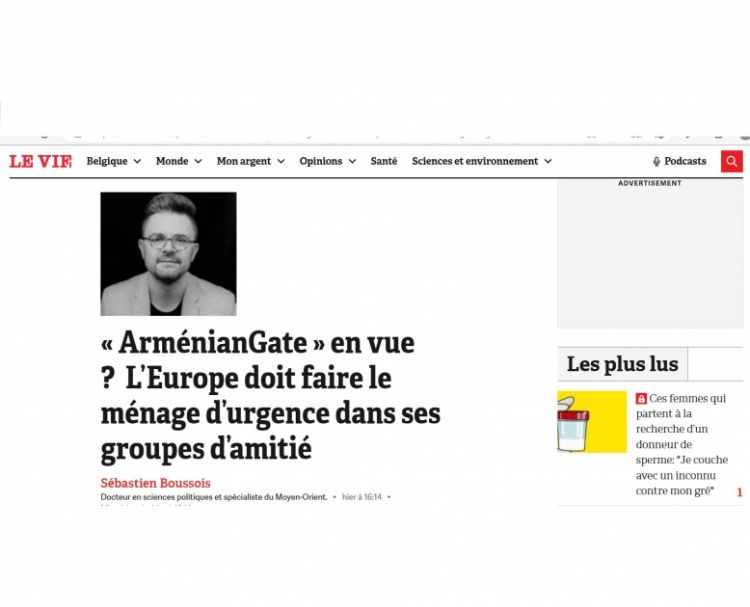 NUHÇIXAN İnformasiya Agentliyi xəbər verir ki, bu fikirlər www.levif.be portalında dərc olunmuş siyasi elmlər doktoru, Yaxın Şərq üzrə ekspert Sebastyan Bussuanın “ArmenianGate”? Avropa təcili olaraq dostluq qruplarının təmizləməlidir” sərlövhəli məqalədə qeyd edilib. S.Bussua məqalədə erməni Kaspar Karampetyanın qeyri-qanuni əməllərindən bəhs edib, Avropa Parlamentində Azərbaycana qarşı imzalanmış bəyanatın qeyri-qanuni yolla necə təşkil olunmasından söz açıb. Qeyd edilib ki, Azərbaycanın ittiham olunduğu bəyanatı imzalayan 33 ölkə Avropa Parlamentində Ermənistanla dostluq qrupunun üzvləridir və Yunanıstanda anadan olmuş, Lüksemburq və erməni vətəndaşlığı olan Kaspar Karampetyan tərəfindən maliyyələşdirilən Avropanın ermənipərəst təşkilatı EAFJD (Ermənistan Ədalət və Demokratiya Federasiyası) ilə sıx əlaqələri olub.