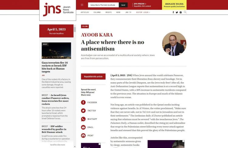 NUHÇIXAN İnformasiya Agentliyi xəbər ki, bu fikirlər ABŞ-ın geniş oxucu kütləsinə malik populyar nəşri “Jewish News Syndicate”də dərc olunan “Anti-semitizmin olmadığı bir yer” sərlövhəli məqalədə əksini tapıb.