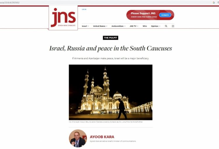 NUHÇIXAN xəbər verir ki, bunu İsrailin sabiq rabitə, peyk və kibertəhlükəsizlik naziri, İqtisadi Sülh Mərkəzinin prezidenti, tanınmış siyasətçi və politoloq Ayub Kara ABŞ-ın populyar “Jewish News Syndicate” nəşrində dərc olunmuş “İsrail, Rusiya və Cənubi Qafqazda sülh” sərlövhəli məqaləsində bildirib.
